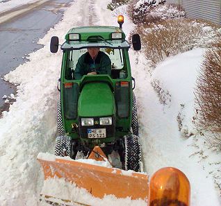Wege und Straßen halten wir sauber von Schnee und Eis. Zuverlässig und zügig soviel wie es nötig ist mit Schneepflügen oder per Hand.